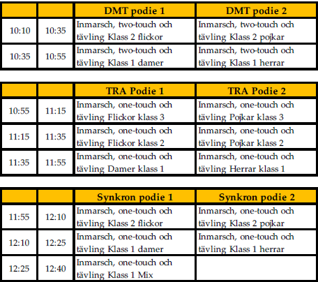 08.30-09.45 Förträning för samtliga finalister på trampolin och DMT