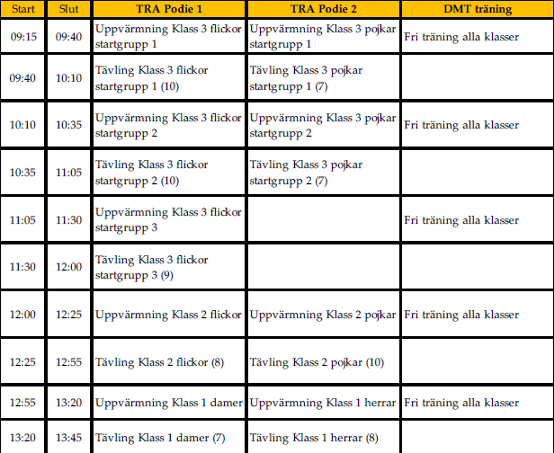 09.15 - 17.40 Förträning och tävling enligt schema nedan