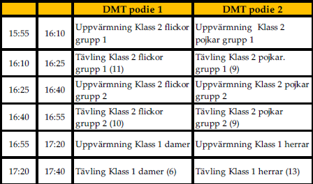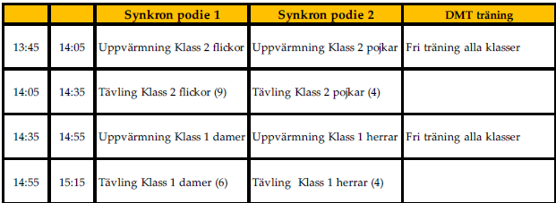 08.30-09.45 Förträning för samtliga finalister på trampolin och DMT